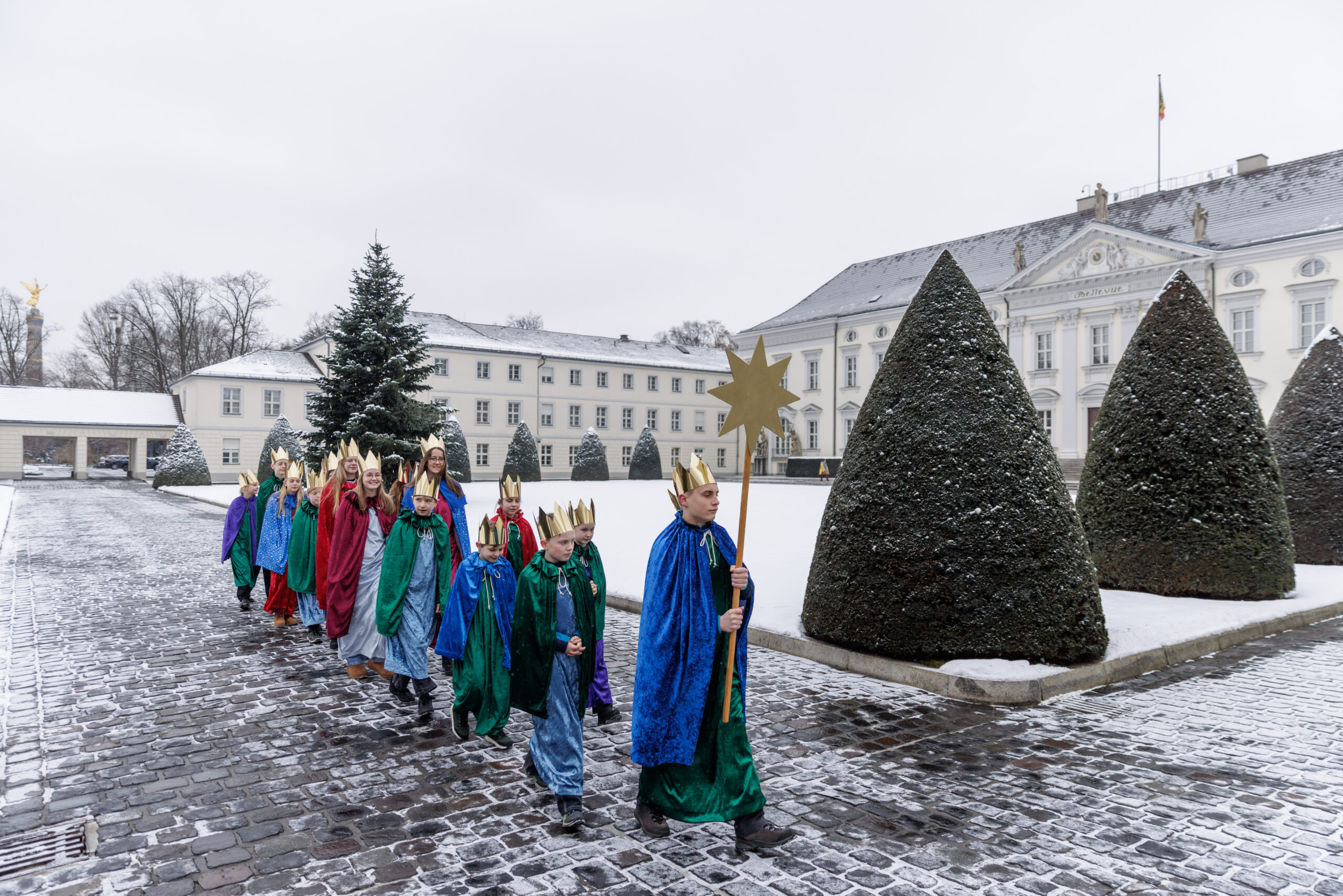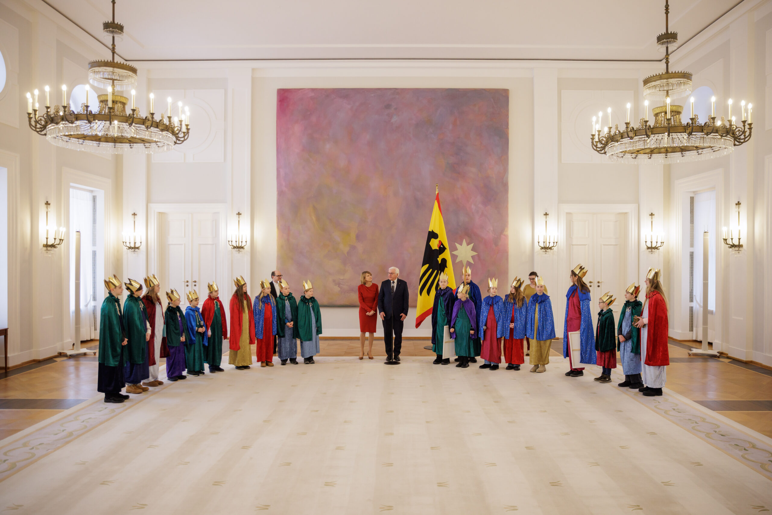 Bundespräsident Steinmeier empfing zum achten Mal Sternsingerinnen und Sternsinger in seinem Amtssitz. Er setzte damit die Tradition der Empfänge fort, die schon seine Amtsvorgänger Karl Carstens, Roman Herzog, Johannes Rau, Horst Köhler, Christian Wulff und Joachim Gauck gepflegt hatten.